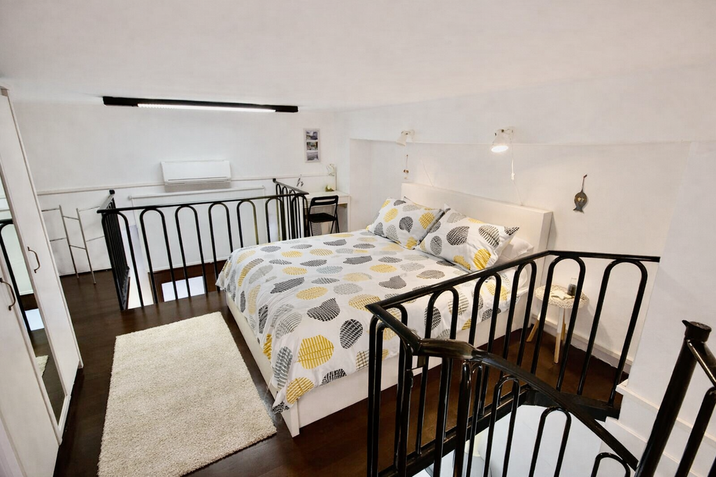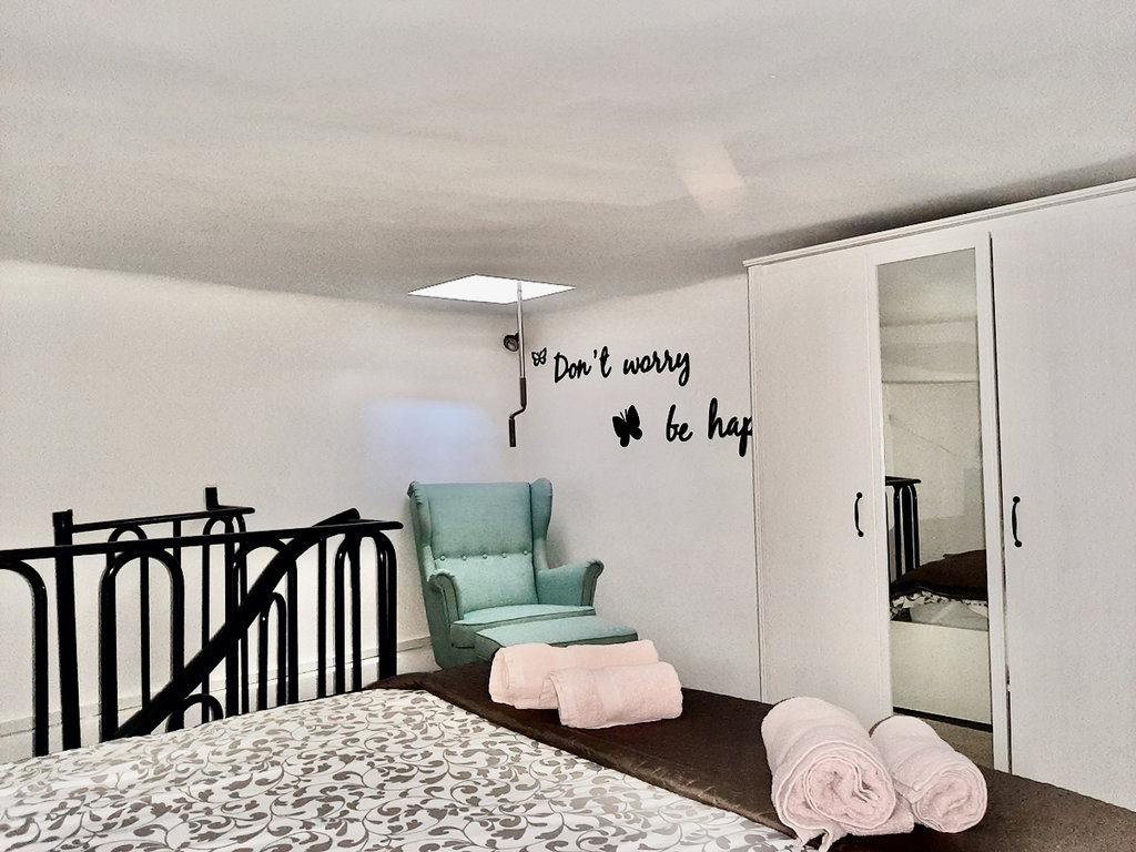 stopnišče, ki vodi v spalnico v nadstropju.